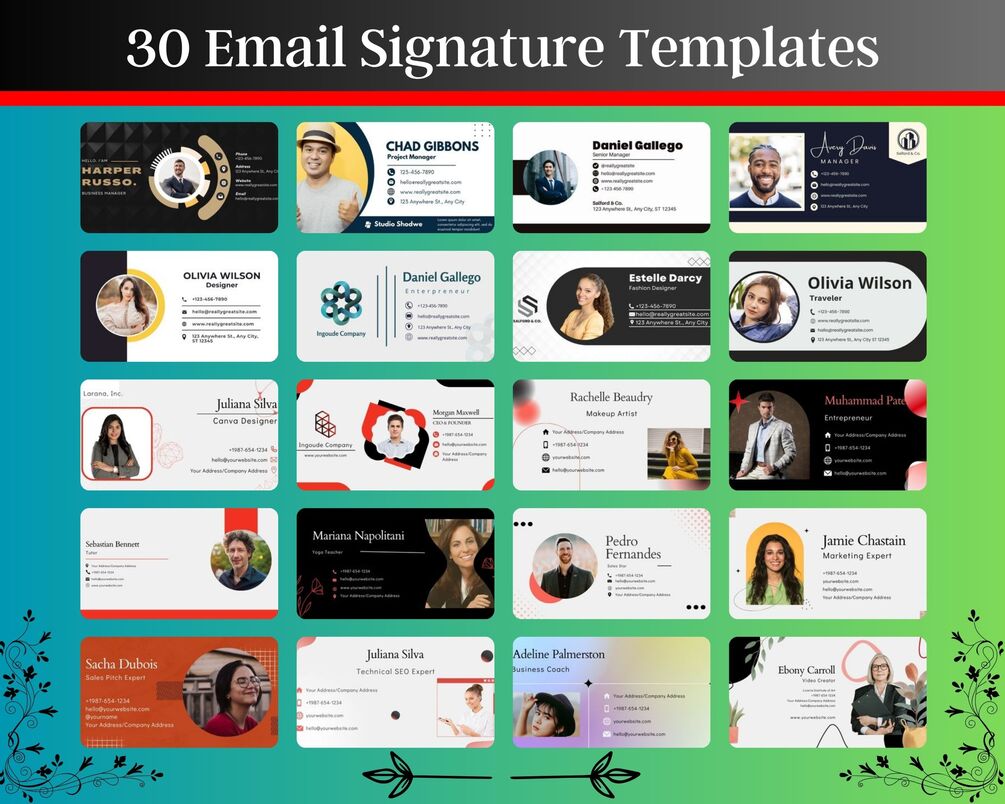 Premium Email Signature Templates for Everyone. Editable in Canva. Use these templates for email signature to look more professional.